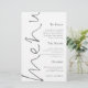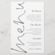 Size 5.5” x 8.5” at a budget price, This modern design has Menu in elegant set gray script running up the left hand side and the rest of the text is aligned to the right which you can easily personalise as well as your names and wedding date on the back. Text and background colors on either side can be changed to any of your choice via the customise further option.