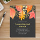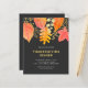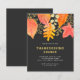 This budget Thanksgiving Dinner invitation is decorated with watercolor fall leaves in autumnal colors on a dark background.