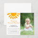This cute budget invitation is decorated with a yellow watercolor sun and stylish script typography.