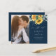 A pretty fall floral wedding save the date with watercolor sunflower and eucalyptus bouquet. Click the edit button to customize this design.