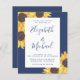 Budget navy blue wedding invitation featuring watercolors of yellow sunflowers, your first names in a large stylish navy blue script and the details in simple navy blue typography.