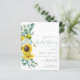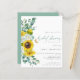 Sunflowers Eucalyptus Script Bridal Shower. A budget price SMALLER 4.5” x 5.6” alternative. Available in a SEMI GLOSS 110 lb CARD STOCK which is the default option (thicker for invitations), OR a SATIN FINISH 80 lb THINNER PAPER STOCK (ideal for enclosures). Envelopes are an optional extra and are slightly larger than the card size. Floral and nature elegance with sunflowers, eucalyptus leaves, peonies, butterfly and a bumble bee to the left hand side and Bridal Shower in a handwritten style set script. Easily personalise the rest of the text with your details. A coordinating color is on the back which you can change to another color if you wish via the Customize Further option.