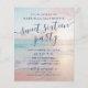An Affordable Cheap BUDGET version of our chic pink and turquoise aqua blue ocean side beach sunset with rose gold palm tree leaf and hazy gradient overlay background on a summer theme sweet 16 birthday invitation. All wording can be changed to work for any age birthday or celebration, and there is space on the back for optional attire, directions, or parking information.