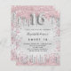 A modern, stylish and glamorous invitation for a girl's Sweet 16, 16th birthday party. A faux silver looking background, decorated with pink and faux silver glitter dust. Personalize and add your name nad party details. Number 16 is written with a balloon style font, script.