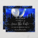 A black background decorated with royal blue drips, confetti, and balloons. Personalize and add a date and name/age. The text: Save the Date is written with a large trendy hand lettered style script.