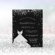 A modern, stylish and glamorous invitation for a Sweet 16, 16th birthday party. A chic black background with faux silver glitter dust and a dress. The name is written with a modern hand lettered style script. Personalize and add your party details.