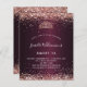 For an elegant Sweet 16, 16th birthday. A burgundy faux metallic looking background color. Decorated with rose gold faux glitter dust and a tiara, crown. Personalize and add a name, age and party details. The name is written with a hand lettered style script