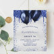 A girly and feminine birthday party invitation. On front: A faux silver background. Decorated with navy blue faux glitter drips, paint dripping look and balloons. Personalize and add a name and party details. The name is written with a hand lettered style script.