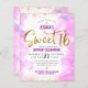 Budget Sweet 16 Pink Watercolor Gold Script Invite