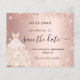 A girly and trendy Save the Date card for a Sweet 16, 16th birthday party. A stylish rose gold background decorated with faux glitter, sparkles and a dress. Personalize and add a date and name/age. The text: Save the Date is written with a large trendy hand lettered style script.