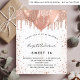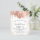 For an elegant Sweet 16, 16th birthday. A white background. Decorated with rose gold, faux glitter drips, paint dripping look and balloons. Personalize and add a name, age and party details. The name is written with a hand lettered style script