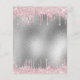 A modern, stylish and glamorous invitation for a Sweet 16, 16th birthday party. A faux silver metallic looking background with an elegant pink faux glitter drip, paint dripping look. The name is written with a black modern hand lettered style script. Personalize and add a name, age and party details.