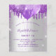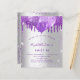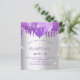 A stylish faux silver looking background. Decorated with purple faux glitter and balloons. Personalize and add a name and party details. The name is written with a hand lettered style script