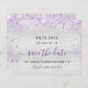 A girly and trendy Save the Date for a Sweet 16, 16th birthday party. A modern faux silver metallic looking background decorated with purple faux glitter dust. Personalize and add a date and name/age. Black and purple colored letters. The text: Save the Date is written with a large trendy hand lettered style script.