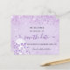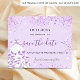 A girly and trendy Save the Date card for a Sweet 16, 16th birthday party. A violet, lavender colored background decorated with faux glitter dust and a dress. Personalize and add a date and name/age. Black and violet colored letters. The text: Save the Date is written with a large trendy hand lettered style script.