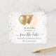 A chic white background decorated with faux gold glitter and balloons. Personalize and add a date and name/age. The text: Save the Date is written with a large trendy hand lettered style script.