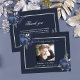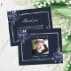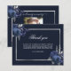 A simple and elegant sympathy thank you card with photo. A navy blue background, a faux silver frame and blue florals. Personalize and add your thank you note.