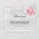 A simple and elegant sympathy thank you card with photo. A faux silver metallic looking background, a white frame, faux glitter dust, white and pink roses, florals. Personalize and add your thank you note. Black text.