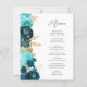 Budget Teal Aqua Gold Floral Script Wedding Menu