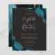A teal blue watercolor agate design trimmed with faux gold glitter appears in two corners of this elegant design. Personalize it with the couple's names in gold-colored handwriting script over a large gray ampersand. Add the wedding details in gold-colored copperplate and italic fonts on a slate black background. The reverse side features a matching teal and gold agate design. NOTE: Envelopes are not automatically included with these budget invitations, so please remember to choose the "white envelopes" option!