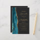 The left-hand edge of this elegant modern wedding invitation features a teal blue watercolor agate border trimmed with faux gold glitter. The customizable text combines gold-colored script and sans serif fonts on a slate black background. The reverse side provides space for wedding details on a solid slate black background, along with a QR code guests can scan to visit your website and RSVP, which saves the cost of printing and mailing separate RSVP cards.