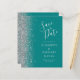 Budget Teal Blue Silver Save the Date Card