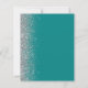 The left-hand edge of this elegant modern wedding save the date card features a silver faux glitter border. The customizable text combines silver gray handwriting, copperplate and italic fonts on a teal blue background. The reverse side features a matching teal and silver design.