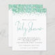 A value for money BUDGET alternative on a smaller size 4.5 x 5.6” semi-gloss 110lbs weight, which is of similar thickness to a postcard (however is not suitable to use as a postcard.). PLEASE NOTE there is ONE invite per sheet. Budget Teal Glitter Baby Shower Invitation. A touch of glam to celebrate the mom to be with a faux glitter border at the top on both sides and occasion header in a set informal script. Easily personalise the rest of the text to your own details.
