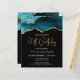 This trendy 80th birthday invitation features a watercolor image of an agate geode in shades of teal with faux gold highlights. The words "80th Birthday" appear in faux gold glitter in decorative modern handwriting font. Customize it with the name of the honoree in gold colored text and the details in white. The same teal agate image appears on the reverse side.