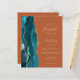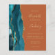 The left-hand edge of this elegant modern wedding invitation features a teal watercolor agate border trimmed with faux gold glitter. The customizable text combines gold-colored handwriting, copperplate and italic fonts on a burnt orange background. The reverse side is solid burnt orange. NOTE: Envelopes are not automatically included with these budget invitations, so please remember to choose the "white envelopes" option!