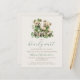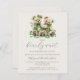 This cute twins baby shower invitation features a pair of sweet watercolor teddy bears wrapped in green ivy, above the words "we can bearly wait" in green handwriting script. Personalize the text with the name of the mom-to-be in green script and the details in sepia sans serif font on a beige background. The reverse side provides space for diaper raffle, books for baby, and registry details, along with a convenient QR code guests can scan to visit the registry. Ideal for a gender-neutral twins baby shower.