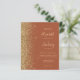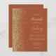 The left-hand edge of this elegant modern wedding invitation features a gold faux glitter border. The customizable text combines pale gold-colored handwriting, copperplate and italic fonts on a terracotta background. The reverse side provides space for wedding details on a solid terracotta background, along with a QR code guests can scan to visit your website and RSVP.