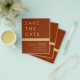 Budget Wedding Elegant Boho Terracotta - Burnt Orange and Gold Save the Date Cards. The Save the Date cards contain a modern hand lettered cursive script typography that are elegant, simple and modern to use after you minimalist simple wedding day celebration.