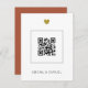 This is the ideal way to let your friends and family know about your upcoming nuptials. Add the QR code for your wedding website. If you don't have a code yet, there are many sites online who can give you a code for free. You will link it to your URL of your website. Then bring the code here and upload it. Add your names, and on the reverse a short personal message.