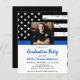 Thin Blue Line Police Graduation Invitations or Police Retirement Party Invitations. Celebrate years of dedicated service, or celebrate your new police academy graduate, and invite friends and family to your law enforcement party with this Thin Blue Line Flag Police Retirement Invitation and Police academy graduation invitations - USA American flag design in Police Flag colors, distressed design. This police officer retirement invitation is also perfect for police academy graduation invitations, change venue in personalization. See our collection for matching police retirement gifts, police graduation gifts,party favors, and supplies. COPYRIGHT © 2021 Judy Burrows, Black Dog Art - All Rights Reserved. Budget Thin Blue Line Police Officer Graduation
