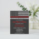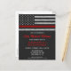 Celebrate your retirement and invite friends and family to your firefighter retirement with this Thin Red Line Firefighter Retirement Invitation - USA American flag design in Fireman Flag colors , distressed design . These budget retirement invitation postcards need to be mailed as oversized postcards so may incur standard postage fees but they don't need an envelope or a return address label. Personalize with name, fire department , address venue, and rsvp details. This firefighter retirement invitation can be used for firefighter graduation, simply change the text when personalizing. See our collection for matching firefighter retirement gifts, party favors, and supplies. COPYRIGHT © 2020 Judy Burrows, Black Dog Art - All Rights Reserved. Budget Thin Red Line Firefighter Retirement