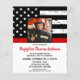 Celebrate your retirement and invite friends and family to your firefighter retirement party with this Thin Red Line Firefighter Retirement Invitation - USA American flag design in Firefighter Flag colors , distressed design . Personalize with name, fire department, address venue, and rsvp details. This firefighter retirement invitation can be used for firefighter graduation, simply change the text when personalizing.See our collection for matching fireman retirement gifts, party favors, and supplies. COPYRIGHT © 2020 Judy Burrows, Black Dog Art - All Rights Reserved. Thin Red Line Photo Firefighter Retirement Party Invitation