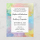 For a colorful wedding, consider an invitation featuring a whimsical, tie dye inspired abstract watercolor painting in a variety of cheerful hues. The painting is the same on both sides; the front includes your information in dark gray on a crisp white rectangular area. Yellow, pink, purple, blue, green and turquoise shades suggest trendy, cool tie dye. The text for your personalized information is easy to customize using the text templates and edit menu. A truly unique wedding invitation! Whimsical, original artwork & design by Tuzi Williams.
