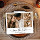 Budget Elegant Trendy Modern Minimalist Calligraphy Script 3 Photo Collage Save The Date flyers in black and white. PLEASE NOTE! FLYERS ARE THIN PAPERS! This romantic delicate design perfect for modern wedding. Features 3 (three) grid photo collage, a whimsical calligraphy in hand lettered style swash tail font with love heart. Easy to personalize it with your wedding details and picture. Low budget cheap affordable flyers.