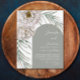 This unique botanical design has been painted in watercolor, and is an original illustration from our studio. Featuring elegant sage green palms and large off white blooms around a sage green archway. Have fun creating your perfect invitation.