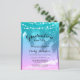 A trendy luau themed budget graduation party invitation. Design features a teal blue and pink palm tree background.