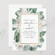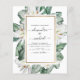 Budget Tropical Magnolia Flowers with Floral Greenery Palm and Faux Gold Foil Geometric Border Spring or Summer Wedding Invitations - includes beautiful and elegant script typography with modern tropical botanical flowers and greenery for the special Wedding day celebration.