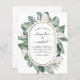 Budget Tropical Magnolia Flowers with Floral Greenery Palm and Faux Gold Foil Geometric Border Spring or Summer Wedding Invitations - includes beautiful and elegant script typography with modern tropical botanical flowers and greenery for the special Wedding day celebration.