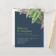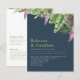 Budget paper Wedding Invitation features a watercolor tropical leaves illustration with a navy blue and green color scheme. Modern and clean typographical design, this wedding day invitation is ready for you to customise with the details of your special day. Part of a range of stationery.