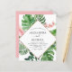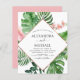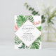 Budget Tropical Green Palm Leaves and Blush Pink Flowers Watercolor with Faux Rose Gold Foil Geometric shape Spring or Summer Wedding Invitations - includes beautiful and elegant script typography with modern tropical botanical flowers and greenery for the special Wedding day celebration.