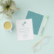 This budget coastal wedding invitation is a smaller size printed on cheaper paper, without an envelope. The simple minimal tropical beach wedding invitation features two palm trees at the top, with classic elegant text, in a white and sea glass blue color scheme, with coordinating sea glass blue on the back.