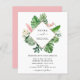 Budget Tropical Green Palm Leaves and Blush Pink Flowers Watercolor with Faux Rose Gold Foil Geometric shape Spring or Summer Wedding Invitations - includes beautiful and elegant script typography with modern tropical botanical flowers and greenery for the special Wedding day celebration.