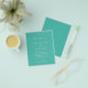 No envelopes, paper flyer version. Save money on formal invitations with this small invitation. Get your guests ready for your amazing wedding with your Turquoise Green MOD Calligraphy Wedding Invitations.