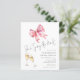 Budget She’s Tying The Knot Pink Bow Bridal Shower. A smaller 4.5 x 5.6” budget priced alternative on a semi gloss 110lbs similar in thickness to a postcard. There is ONE per sheet. The main header is in an elegant set script. The rest of the text you can easily personalise.