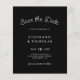 Budget Elegant Modern Minimalist Typography Script Black Cheap Wedding QR CODE Save The Date Flyers. This delicate simple non-photo design perfect for modern wedding. Features whimsical calligraphy in hand lettered style font calligraphy or typography script in white on black color background. At the back side QR code that leads to your wedding website. Easy to personalize it with your wedding details. Low budget affordable save the date wedding flyers.